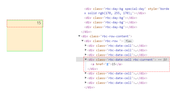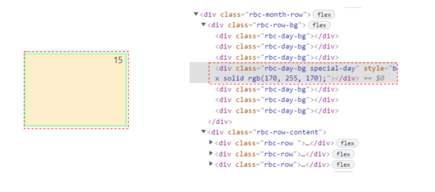 만약 rbc-row-bg가 아닌 rbc-row-content영역을 커스텀 해야 할 경우 어떻게 해야 할까요? 아래와 같이 rbc-row-content는 날짜 영역안의 내용을 의미합니다.